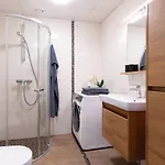 بالإضافة إلى وسائل الراحة مثل المكواة واللوح الكيّ ومرافق لكي الملابس ونظام التحكم المناخي، يتميز التصميم الداخلي أيضًا بتلفزيون بشاشة مسطحة مع قنوات فضائية والتلفزيون متعدد القنوات لإقامة ممتعة. تتوفّر أسرّة مع وسائد من الريش تحت تصرف الضيوف. استمتع براحة الحمام في الشقة المجهزة بالمجفف وملاءات الحمام والمناشف. كما يمكن العثور على الدوش.